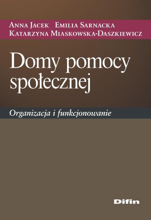 Publikacja jest pierwszą na rynku wydawniczym pozycją ukazującą działanie domów pomocy społecznej, uwzględniającą wieloaspektowość problemów, jakie pojawiają się w trakcie zakładania i prowadzenia tych placówek. Książkę wzbogacono o wyciąg tez z orzecznictwa sądowego i administracyjnego, które odnoszą się do poszczególnych przepisów ustawy o pomocy społecznej, normujących problematykę funkcjonowania domów pomocy społecznej oraz wzory formularzy wykorzystywanych w działalności tych jednostek organizacyjnych. Opracowanie omawia w szczególności: tworzenie i rejestrację DPS potrzeby bytowe w DPS - realizację zadań opiekuńczych i potrzeb wspomagających w DPS zapewnienie świadczeń zdrowotnych w DPS - personel i wolontariat w DPS - dokumentowanie działalności DPS oraz nadzór i kontrolę DPS