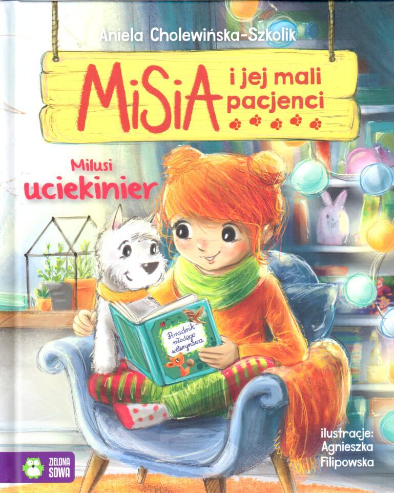 Poznaj Misię, sympatyczną siedmiolatkę, która prowadzi klinikę weterynaryjną. Dziewczynka posiada niezwykły dar - potrafi rozmawiać ze zwierzętami! Dzięki temu wie dokładnie, co dolega jej pacjentom. W niesieniu pomocy zawsze wspiera ją najlepszy przyjaciel - piesek Popik. Pomocy wymaga mały gil i bardzo osłabiona sikorka. Kolega Misi prosi ją o opiekę nad swoim pupilem. Zwierzak ucieka jednak z domu dziewczynki. Kim okaże się milusi uciekinier? Jakie zabłąkane zwierzę spotkają w lesie przyjaciele? I co takiego Poradnik Młodego Weterynarza? Odpowiedzi na pytania znajdziesz w tych wyjątkowych opowiadaniach. [okładka].