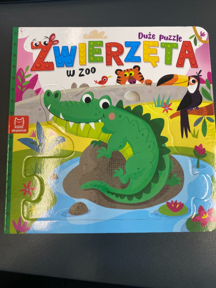 Książeczki dla małych miłośników zwierząt, dopasowane do małych rączek. Wierszyki o zwierzakach pomagają ćwiczyć koncentrację i pamięć dziecka oraz wzbogacają jego słownictwo, a zabawa z puzzlami wspiera rozwój małej motoryki. Zaletą serii jest to, że puzzlami można bawić się również poza książką – układaj je i łącz, dowolnie dobierając puzzle ze wszystkich czterech książek. W tej książeczce można zobaczyć: krokodyla i tukana, papugę, małpy i zebry, flamingi, słonia i hipopotamy, tygrysa, strusie i żyrafy. źródło opisu: [www.empik.com]